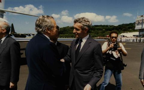 Presidente do Governo Regional dos Açores, Mota Amaral, recebe Presidente da República, Mário Soares no Aeroporto da Horta