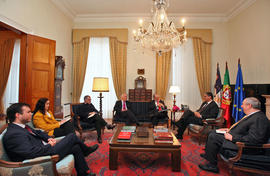 Registo fotográfico de Gil Oliveira, presidente da Direção da Unileite – União das Cooperativas Agrícolas de Lacticínios e de Produtores de Leite da Ilha de São Miguel, em audiência, com o presidente do Governo Regional, Vasco Cordeiro, no Palácio de Santana, em Ponta Delgada.