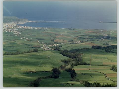Fotografia capta uma vista ampla sobre a Praia da Vitória.