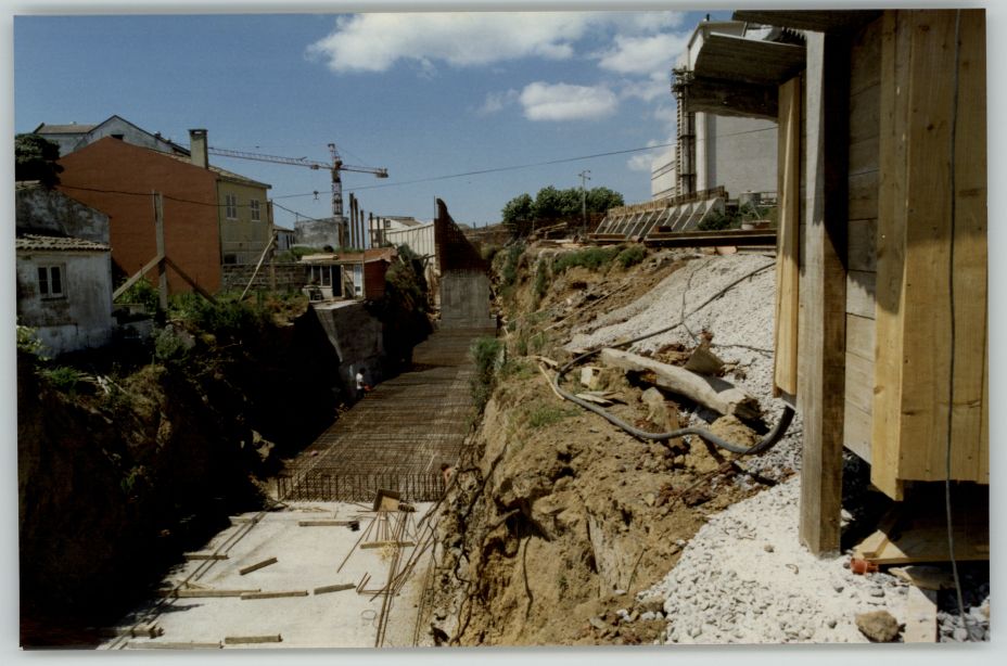 A fotografia regista a construção dos muros de suporte na zona da Pranchinha.