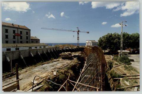 A fotografia regista a construção dos muros de suporte na zona da Pranchinha.