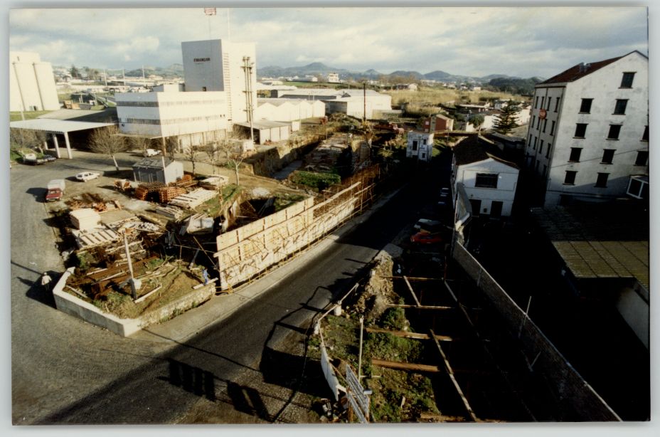 Na fotografia é visível a obra de execução dos encontros da passagem inferior na zona da Pranchinha, saída leste de Ponta Delgada.