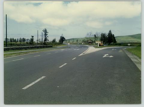 A fotografia mostra a Via Rápida da Terceira já concluída, ao fundo da via, pode ler-se nas placas sinaléticas o nome das seguintes localidades: S. Sebastião e Feteira.