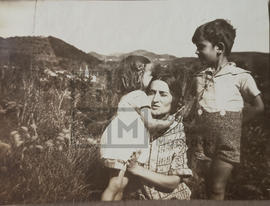 Desenho de perfil, a lápis, da autoria de Canto da Maya e que este representa. Tem inscrição manuscrita: "Para a Violante". O desenho está feito no verso de um convite do Secretariado Nacional da Informação, Cultura Popular e Turismo para a exposição "Desenhos de Crianças Japonesas" no Palácio da Foz a 25 de abril de 1966.