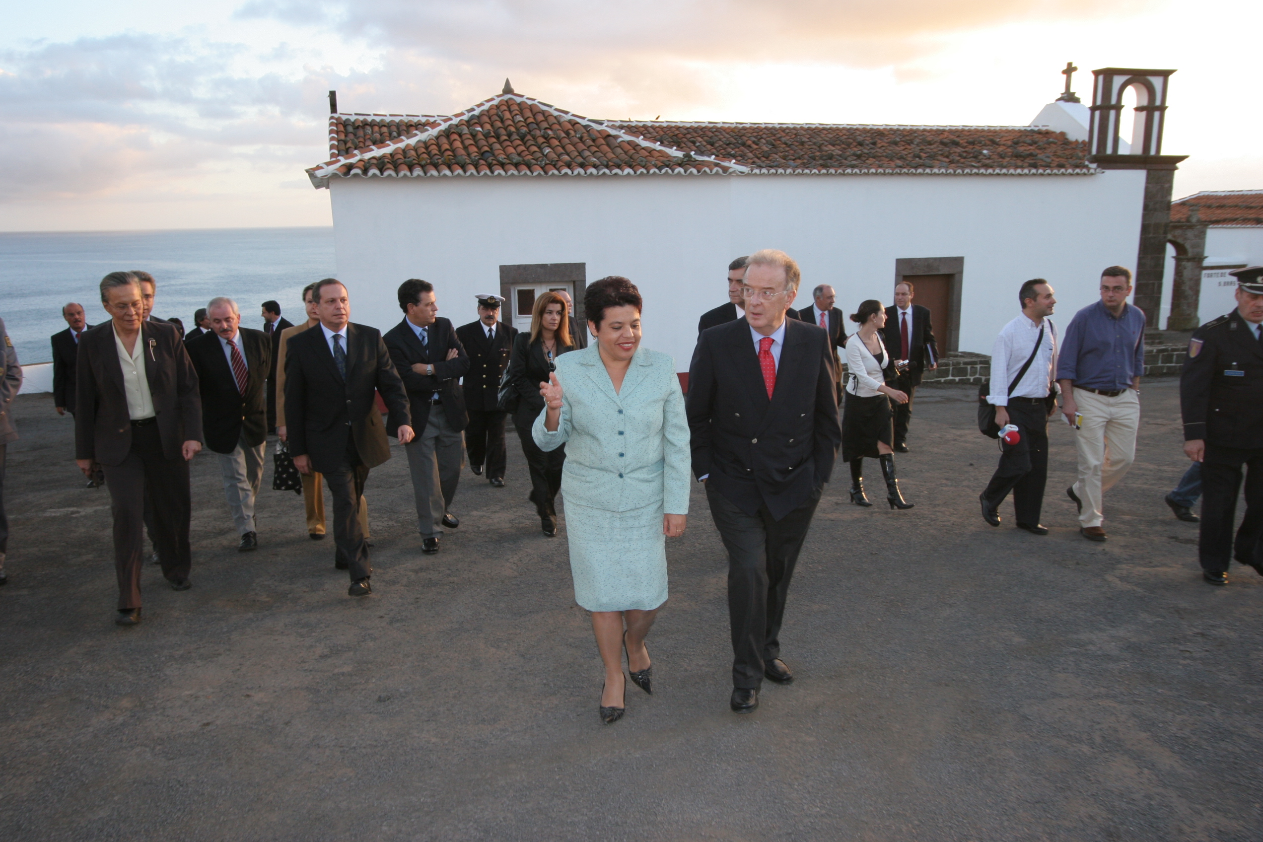Registo fotográfico da presidente da Câmara Municipal de Vila do Porto, Nélia Maria Coutinho Figueiredo, acompanhar o presidente da República, Jorge Sampaio, na visita ao Forte de S. Brás e Ermida de S. Pedro Gonçalves, em Vila do Porto, no âmbito das “Jornadas do Turismo”.